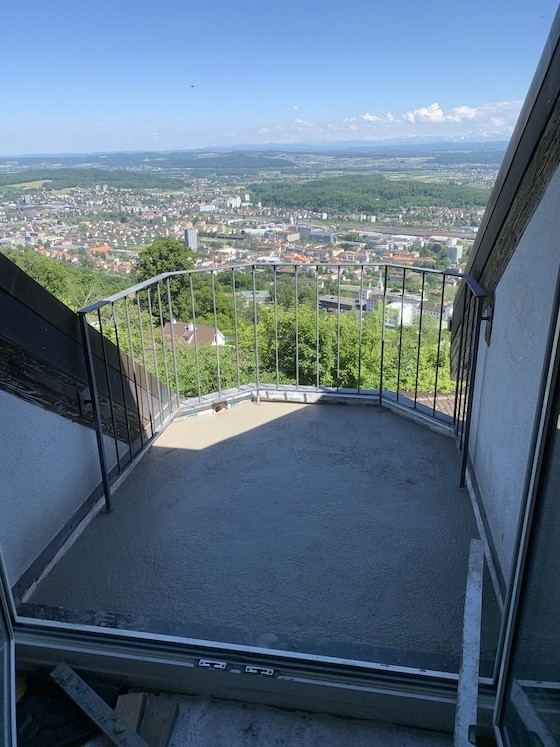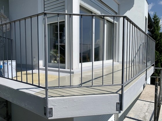 In Evillard-Leubringen durften wir die Balkone eines Einfamilienhauses umfassend sanieren. Im Rahmen der Arbeiten wurden Betonsanierungen an beiden Balkonen durchgeführt, wobei beim kleineren Balkon ein kompletter neuer Unterlagsbodenaufbau erforderlich war. Um zukünftige Schäden zuverlässig zu vermeiden, wurden sämtliche Balkonflächen mit einem hochwertigen Flüssigkunststoffsystem vollständig abgedichtet.